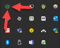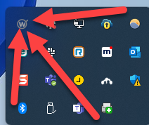 If you don’t see that screen, check your taskbar in the bottom right corner. You can click the arrow to expand it and find the little “w” as pictured below. Click it (may need to right click) and you should have the login screen from above.
