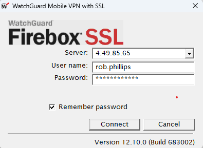 You can tick remember password and you should be able to start it up, hit connect, log into ADP and clock in easily. Once you’re done, right click the little W (which is now green if you’re connected) and click disconnect.