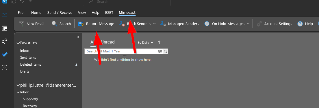 - If you feel that an email is unsafe, please select the email and select report message under the Mimecast tab in the Outlook application.