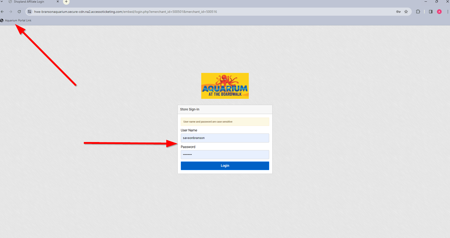 - You now have the chrome profile for the Aquarium ticket access. Select the bookmark to open the website. The account information will auto populate for login.